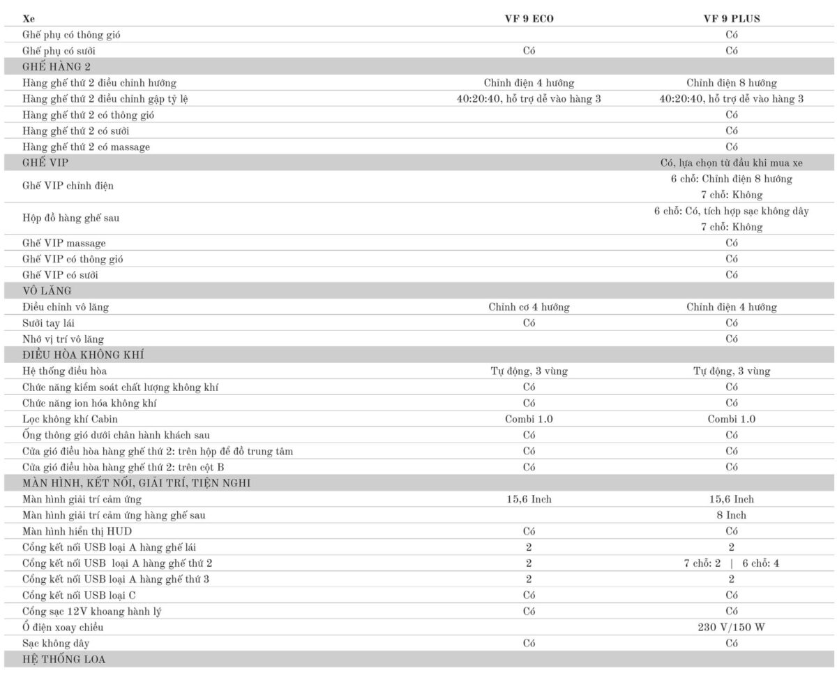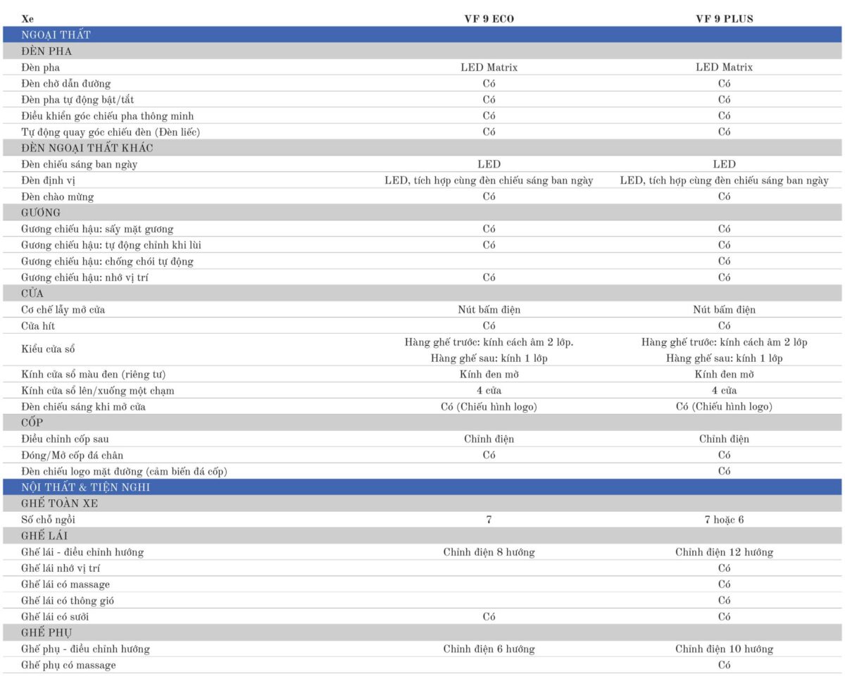 | VINFAST VF9 Eco | 1.499.000.000 | call |